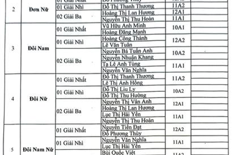 Chiều ngày 13/12/2024, Giải cầu lông học sinh THPT cấp trường năm học 2024-2025 đã chính thức khai mạc tại trường THPT Ngô Sỹ Liên và diễn ra trong vòng 7ngày từ ngày 13/12 đến 20/12 năm 2024. Giải đấu bao gồm có đơn nam, đơn nữ, đôi nam, đôi nữ, đôi nam nữ. Với quyết tâm cao độ cùng sự nỗ lực không ngừng nghỉ, các em đã giành được nhiều giải thưởng cao và kết quả như sau:
