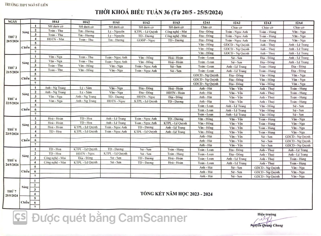 Thời khóa biểu tuần 40
