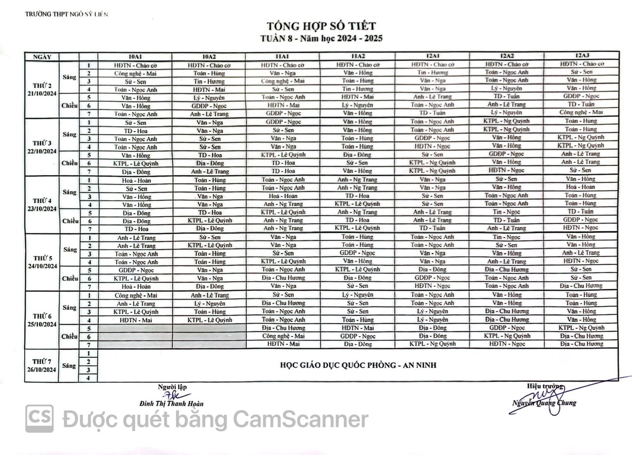THỜI KHÓA BIỂU TUẦN 8