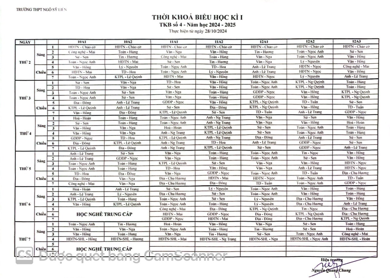 Thời khóa biểu tuần 10