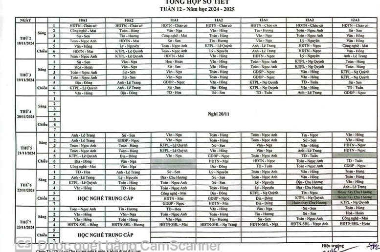 Thời khóa biểu tuần 12