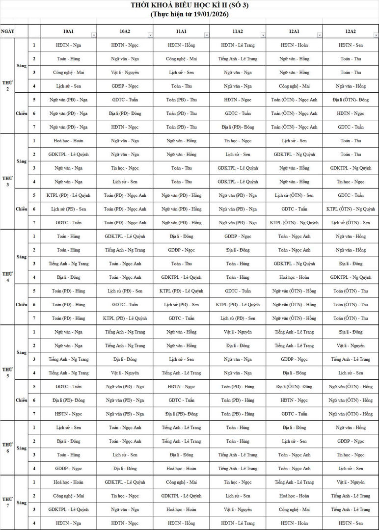 THỜI KHÓA BIỂU TUẦN 3