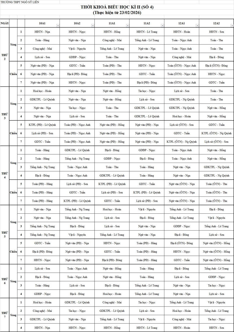 TKB số 2, năm học 2025-2026