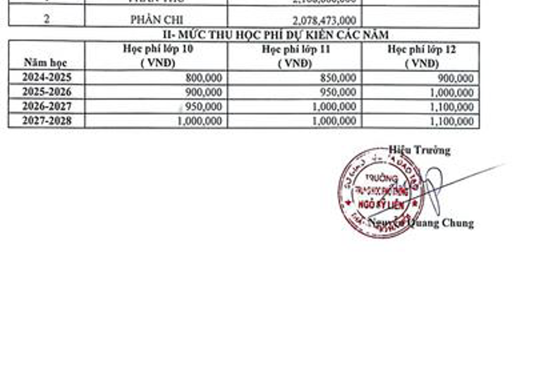 Mức dự kiến các năm học tiếp theo