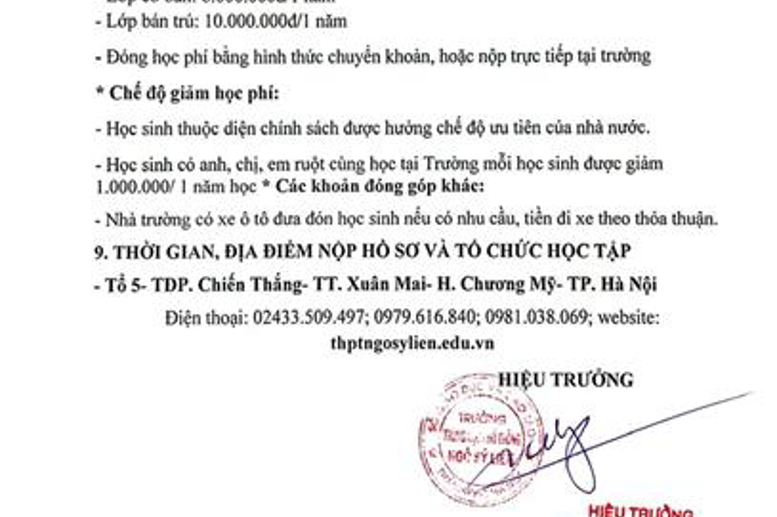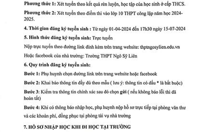 Trường THPT Ngô Sỹ Liên thông báo tuyển sinh lớp 10 khóa 24 niên khóa 2023-2026