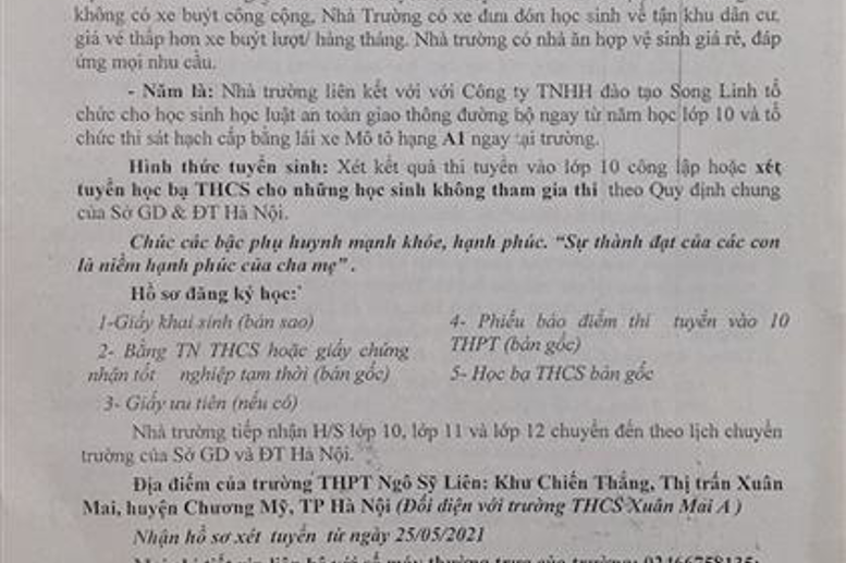 Trường THPT Ngô Sỹ Liên thông báo tuyển sinh lớp 10 khóa 24 niên khóa 2023-2026