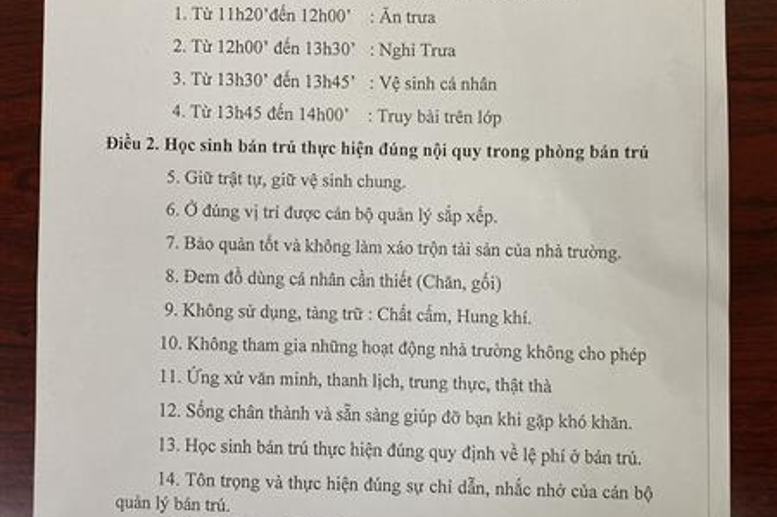 NỘI QUY BÁN TRÚ CỦA TRƯỜNG THPT NGÔ SỸ LIÊN NĂM HỌC 2023-2024