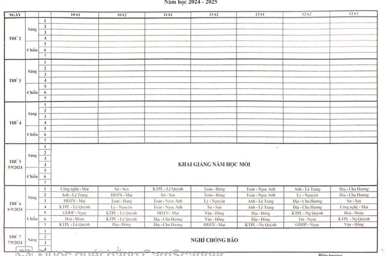 Thời khóa biểu tuần 1